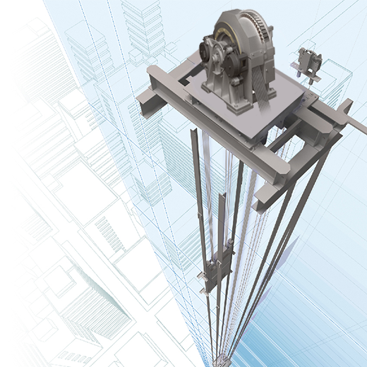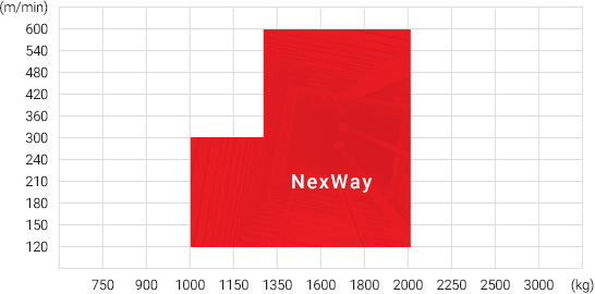 * PM motor: Permanent magnet motor Super High-rise Rope Mechanics미쓰비시의 sfleX-rope™ 는 고강도 강선 스트랜드를 엮어 특수 기법에 따라 제조한 것으로 종래의 로프보다 높은 강도를 제공하도록 함으로써 더욱 더 안전한 운행을 할 수 있도록 하였습니다. 또한, 기존의 로프 대비 보다 높은 밀도와 넓은 단면적을 가지고 있어서 승하차 시 발생하는 출렁 거림을 감소시켜 승객이 안심하고 탑승할 수 있도록 하였습니다.