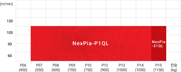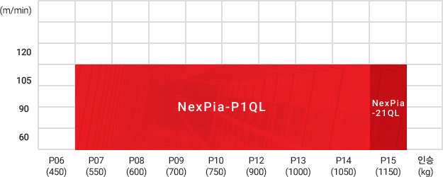 | 60, 90, 105 | 550(7)~1050kg (14인승), 1150kg(15인승) |